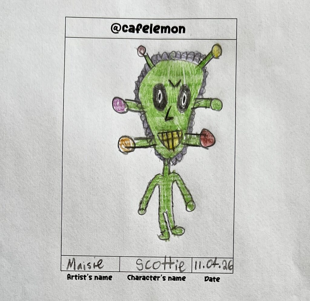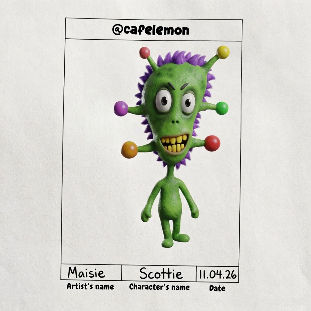When families visit Café Lemon with children under the age of 12, they aren’t just getting a snack—they are given a special “My 3D Monster” print-out. This template invites them to design their very own friendly monster, complete with a name and a personality.